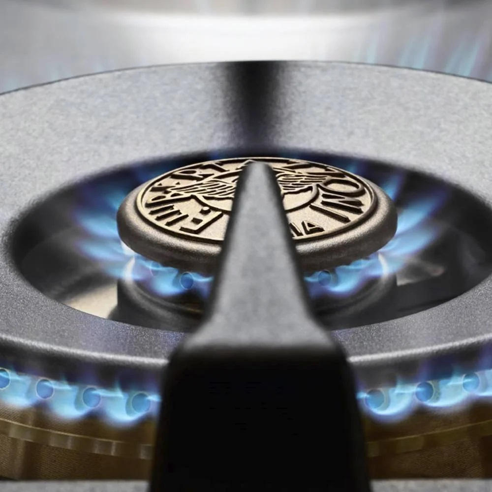 • Варочная панель: 6 универсальных газовых конфорок из латуни;