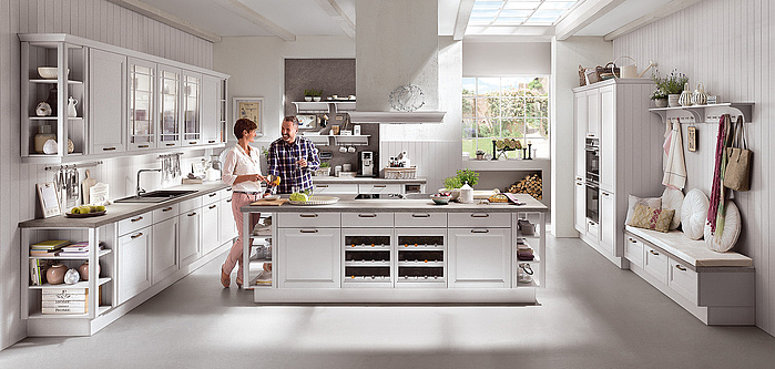 Фасады из натуральной древесины всегда выглядят как высококачественный природный материал. Поэтому они прекрасно подходят для создания образа современного загородного дома высокого уровня. Четкие формы, натуральные расцветки и множество очаровательных деталей, таких как плетеные выдвижные ящики, застекленные двери или стеллажи для бутылок придают этой кухне аутентичный вид и ощущение уюта. Благодаря инновационной кухонной технике в них сочетаются традиция и современность.